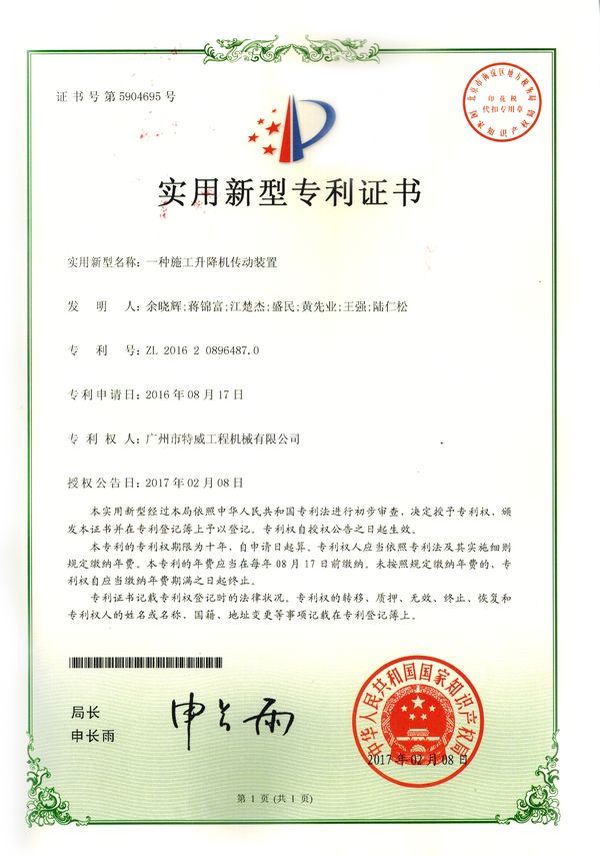 廣州市特威工程機械有限公司地處廣州市白云區神山鎮,廣清高速神山出口附近,是一家施工升降機的專業生產廠家。公司成立于2011年,占地100000多平方米,注冊資金1060萬元,現有員工300余人其中工程技術人員33人,高級技術人員52人。